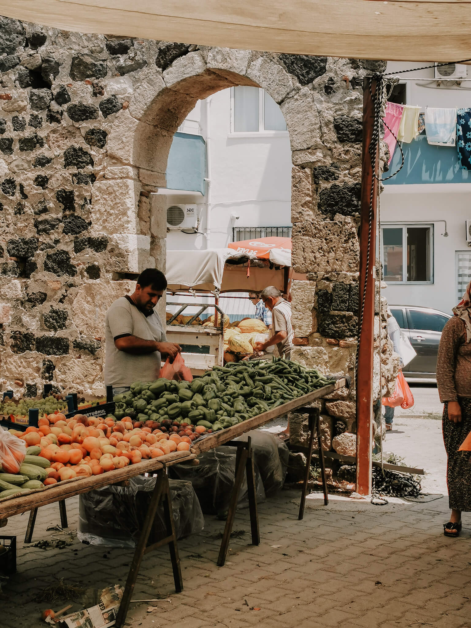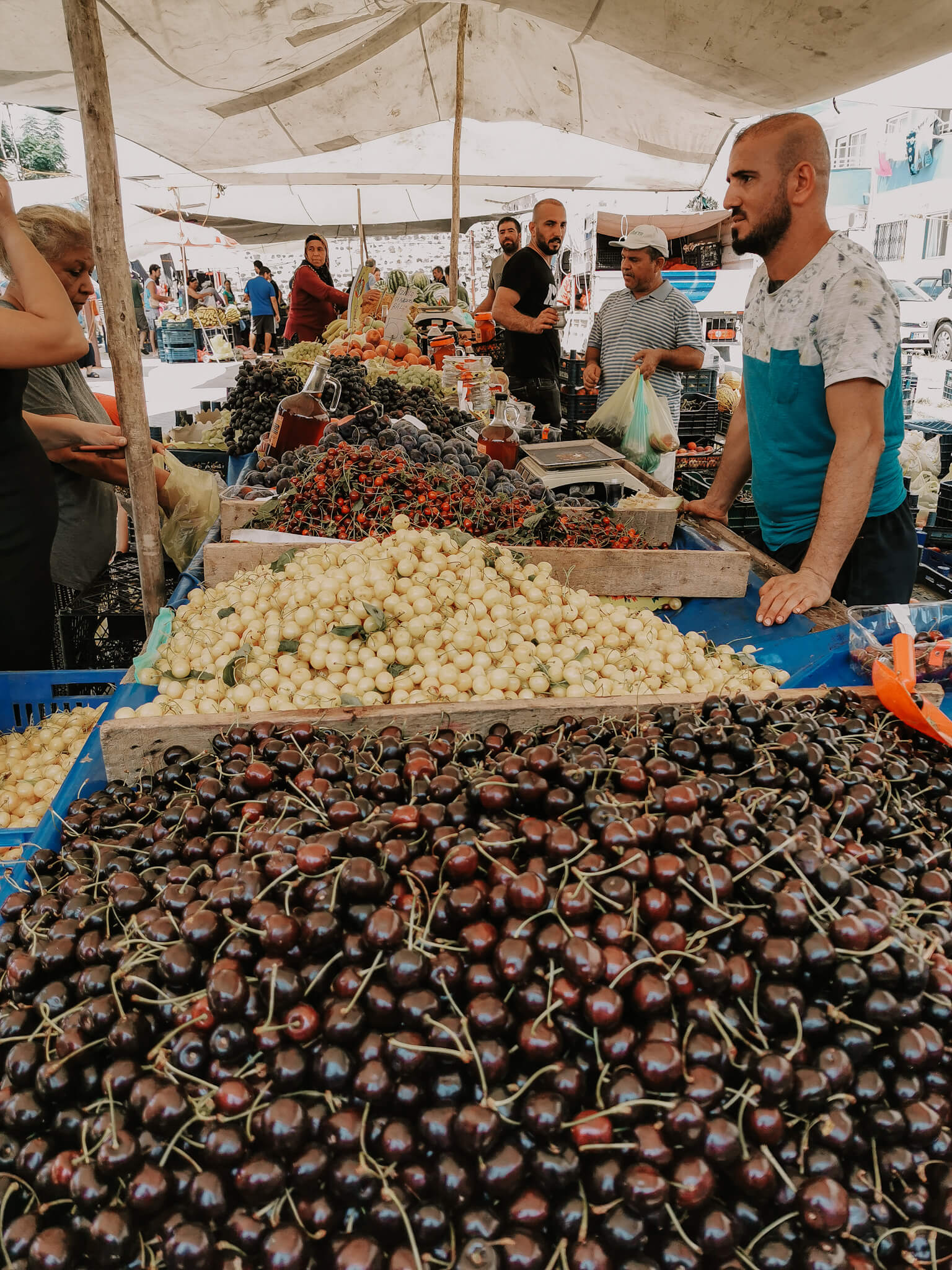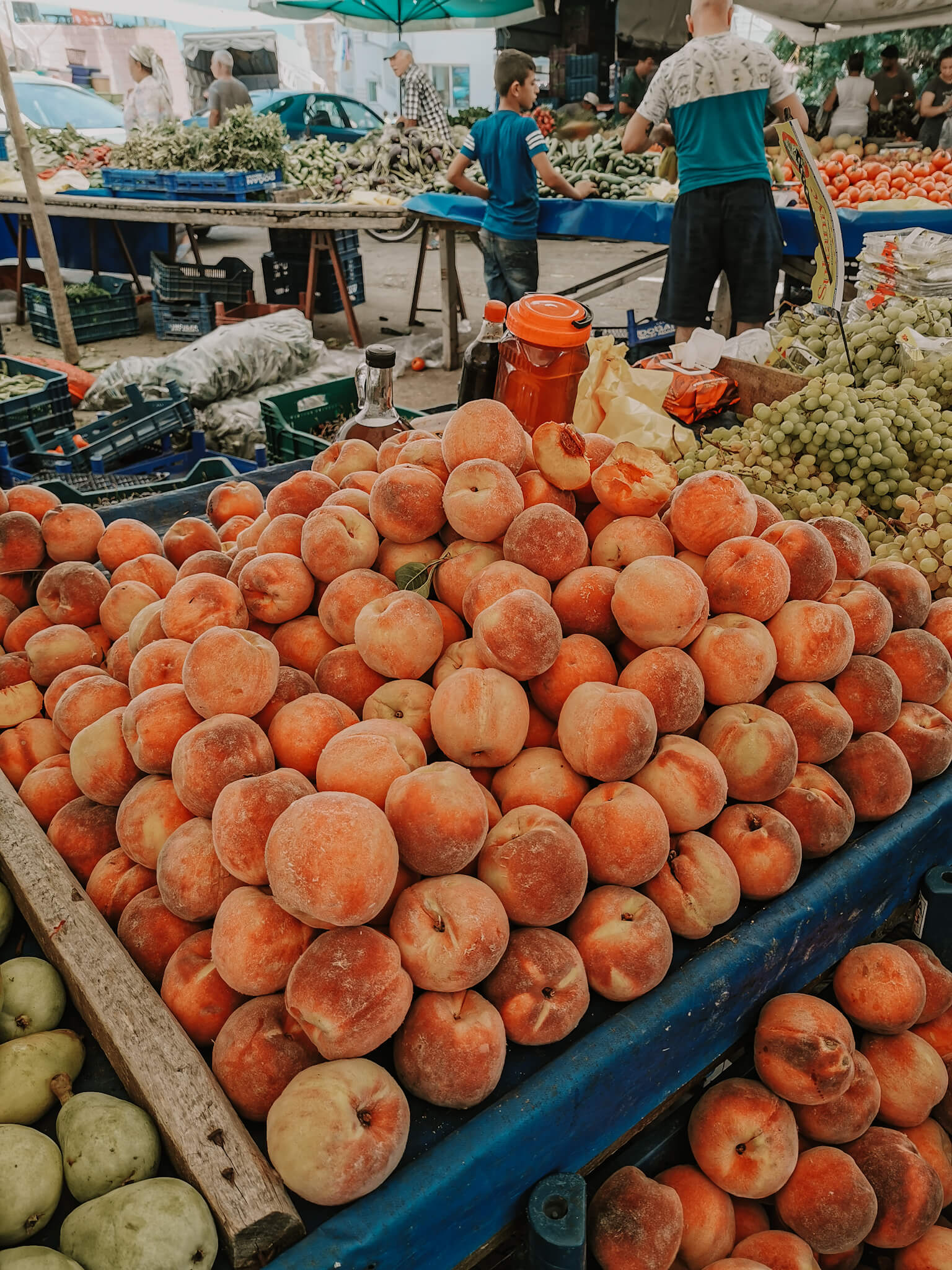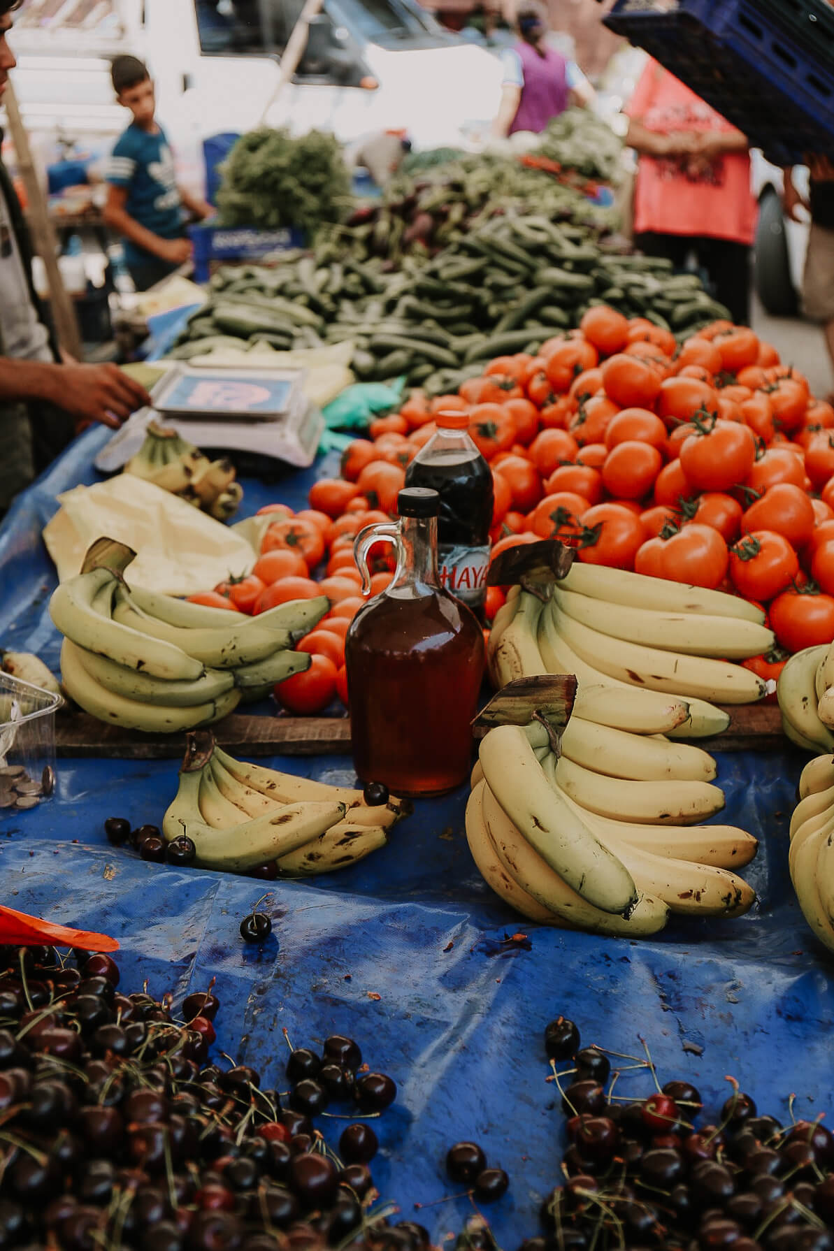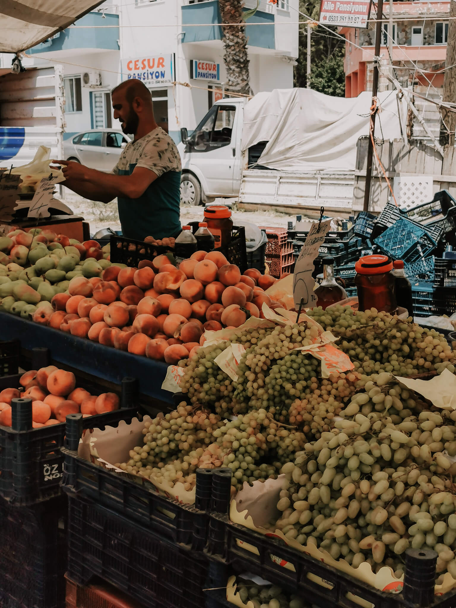 Einige von euch haben mich auf Instagram gefragt, wie das denn aussieht mit dem Obst und Gemüse, das dort auf dem Markt angeboten wird: Kommt das von dort, ist es also regional? Wird es gespritzt? Man hört ja viel Schlechtes diesbezüglich aus der Türkei?