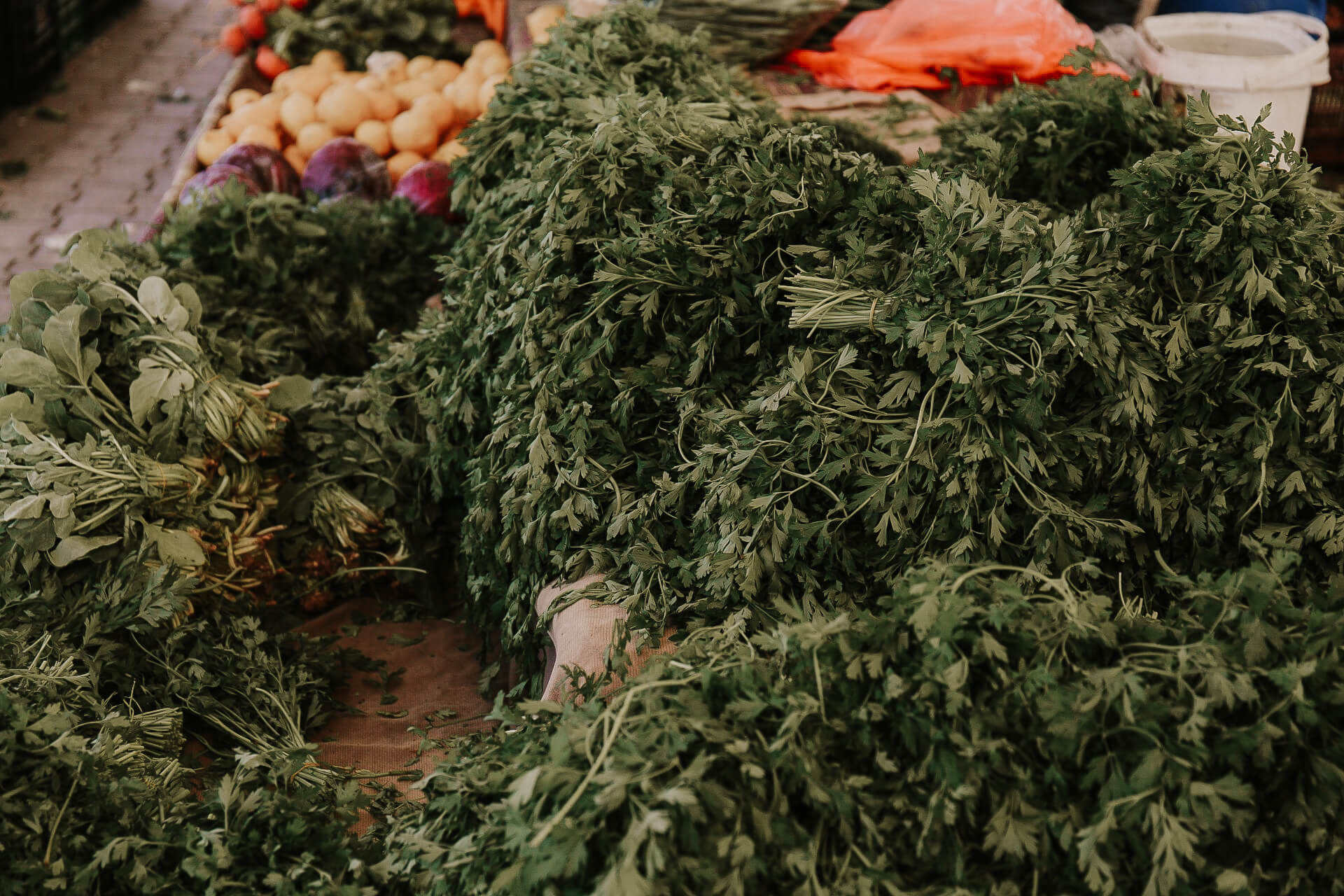 Ich sauge alles auf, jeden Geruch, die Bewegungen der Menschen um mich herum, sie sind hektisch, weil Bayram vor der Tür steht und deswegen viel eingekauft werden muss in kurzer Zeit, die Farben der frischen Lebensmittel, die Rufe der Händler*innen. Nach zehn Minuten ist mein Speicher voll, ich bin erschöpft und taumele halb neben mir stehend durchs Geschehen.