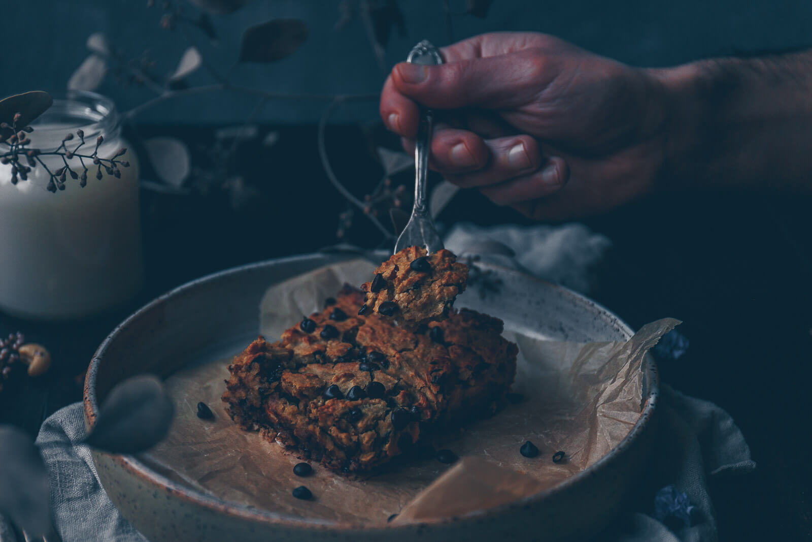 Das Ergebnis ist, ich kann es ganz unbescheiden sagen, so gut geworden, dass ich am liebsten den rohen Teig so gegessen hätte. Also, aus dem Mixer heraus. Wie man isst, wenn niemand zuschaut. Ein bisschen hat er mich an den Cookie Dough aus Kichererbsen erinnert und so viel Unterschied besteht zwischen beidem auch gar nicht – falls ihr also keine Lust habt, eine Stunde auf die Kichererbsen-Blondies zu warten, könnt ihr den Teig auch einfach in einer Schüssel anrichten (oder Bällchen formen) und ihn als gesunden Cookie Dough präsentieren.