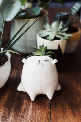 Meinen Gesichts-Pflanzentopf (von dem ich eine kleine und eine größere Variante besitze) habe ich allerdings bei Lunoa gekauft (ein kleiner Shop für skandinavisches Interieur, nicht dezidiert auf Nachhaltigkeit ausgelegt).