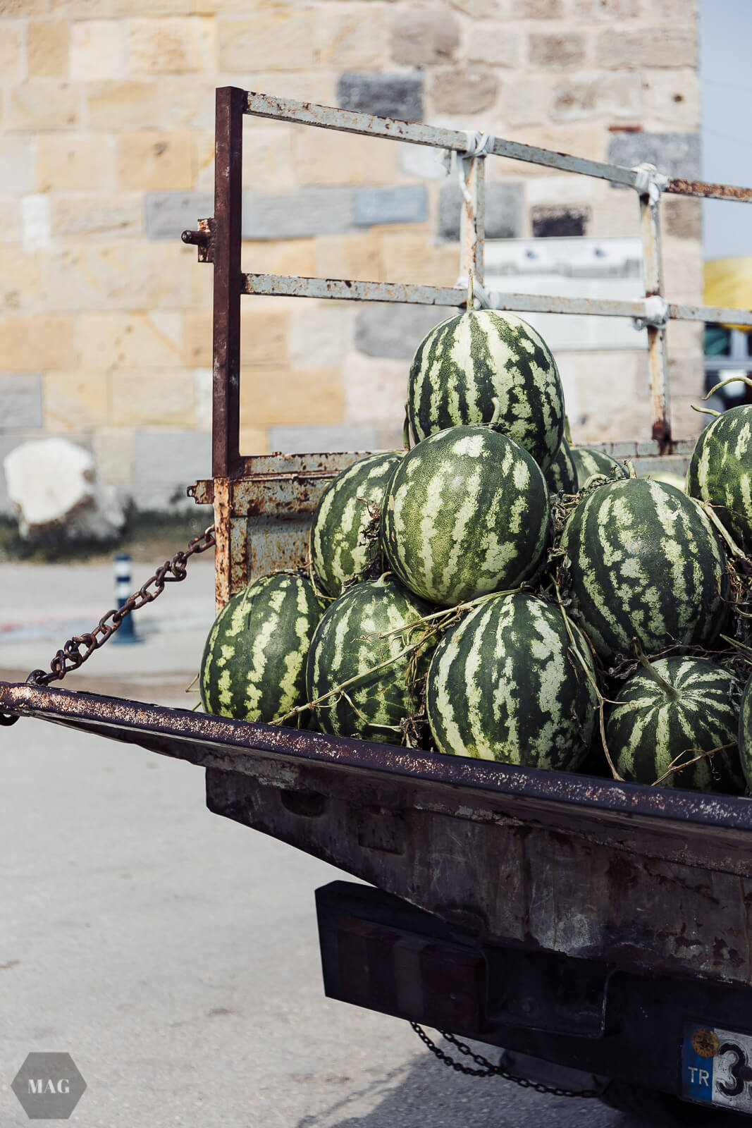 Und – natürlich – überall Essen. An jeder Straßenecke. Am auffälligsten waren auch hier wieder die allgegenwärtigen Melonen-Pickups, in die ich mich bereits beim ersten Anblick hoffnungslos verknallt hatte. Doch generell essen die Menschen in Yumurtalik gerne – auf der Hauptstraße (die gleichzeitig auch die einzige richtige Straße ist, die es überhaupt in dem Ort gibt) reihen sich Döner-Buden an Restaurants mit unterschiedlichster Speisekarte – und überall: Fleisch, Fleisch, Fleisch.