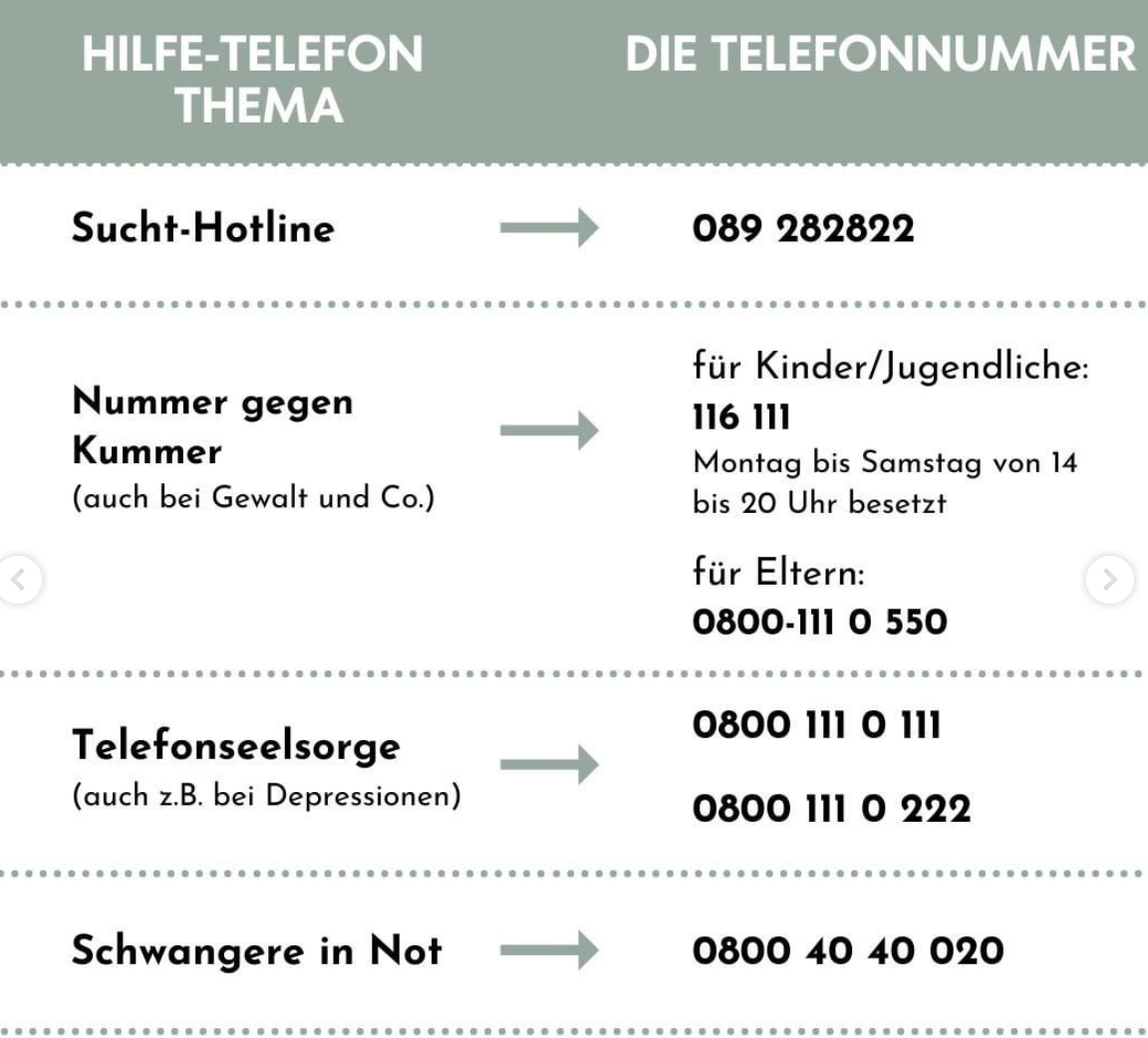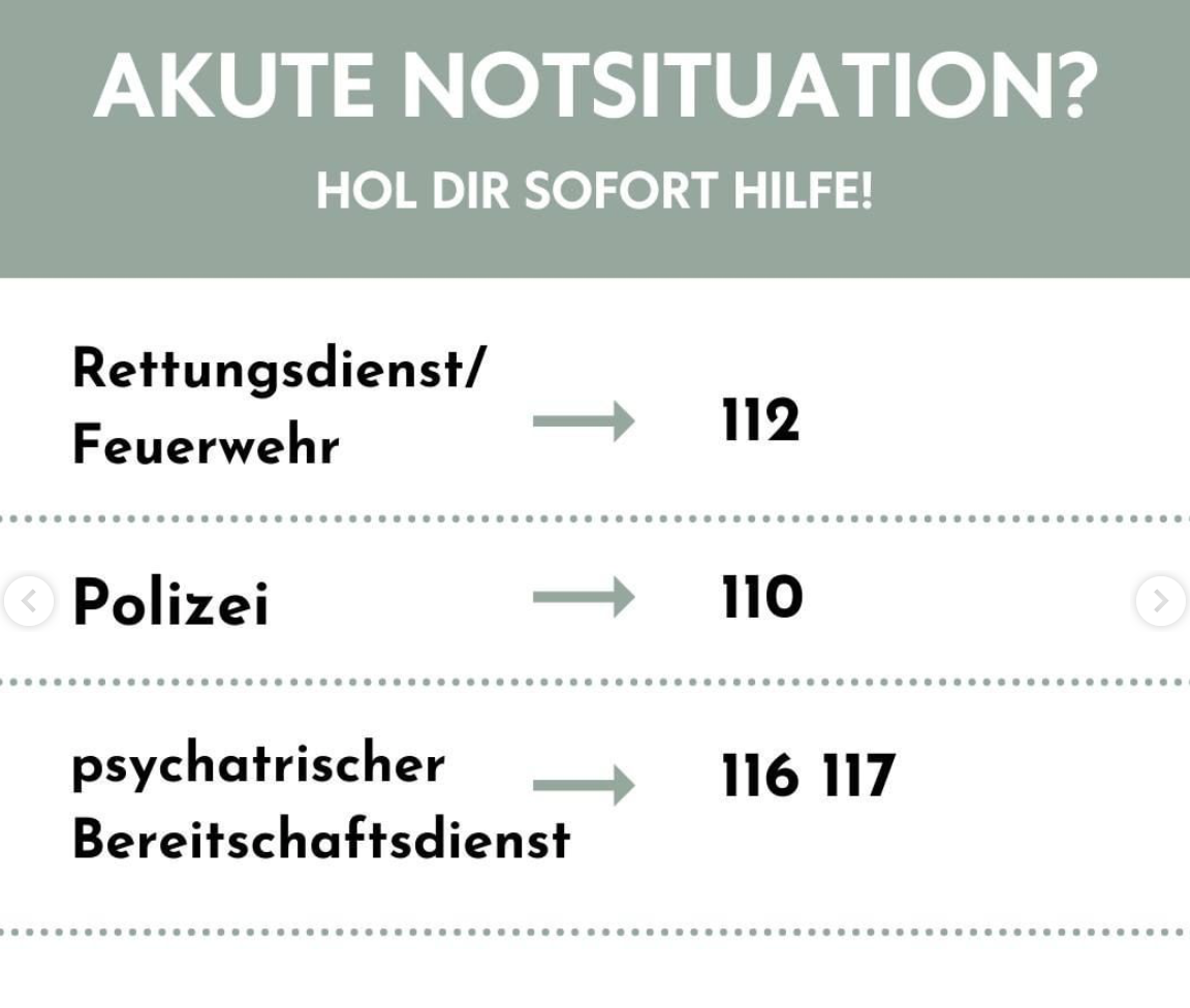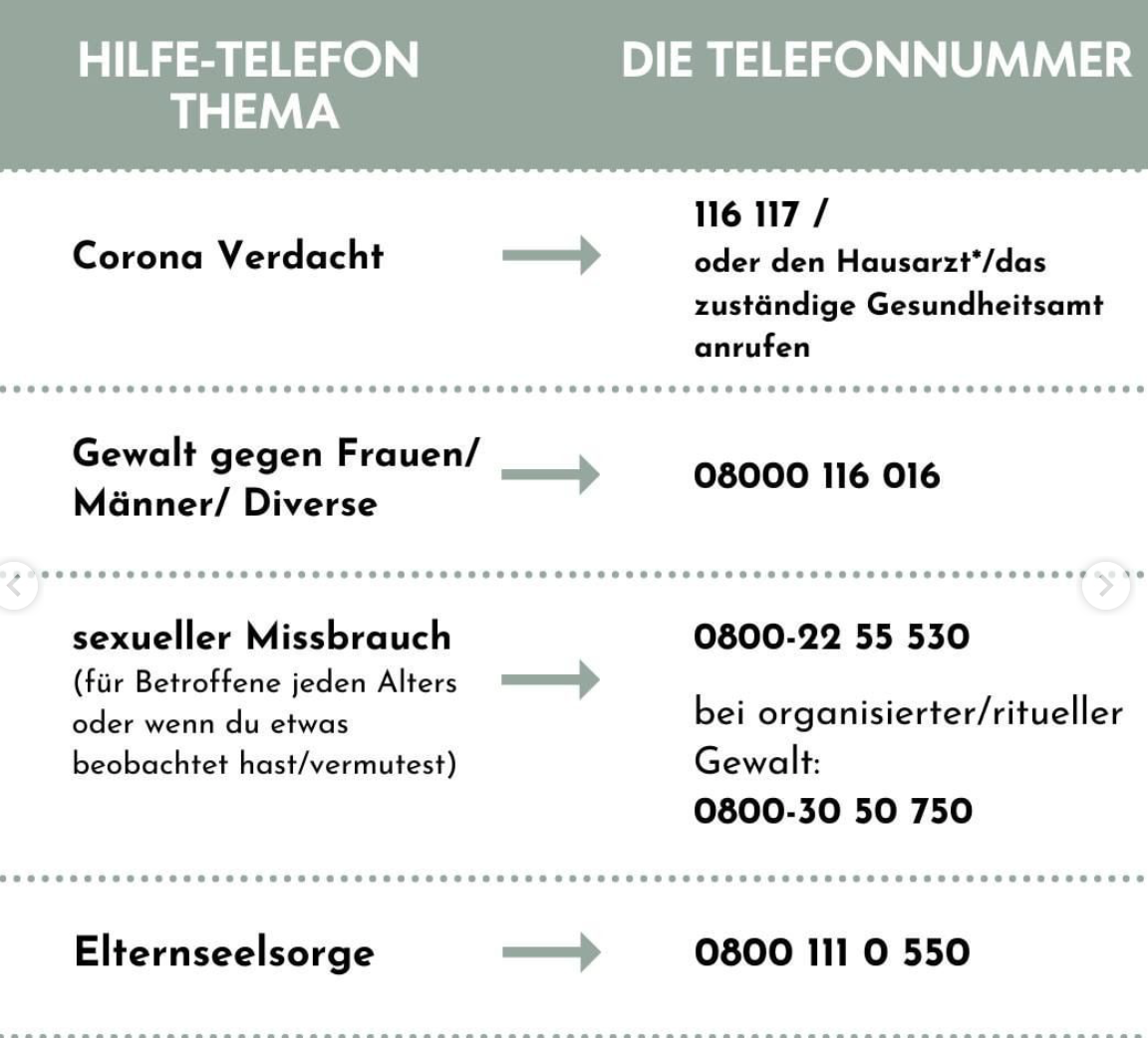 An dieser Stelle möchte ich nicht noch einmal alles aufschreiben, was bereits schon so gut aufgearbeitet wurde und auf die Zusammenstellung von Inga von Zero Waste Deutschland verweisen, die auf Instagram einen guten Übersichts-Post mit den aktuell wichtigsten Telefonnummern für Hilferufe erstellt hat: